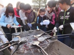 5年生の親子学習会は天気に恵まれ、学校の中庭でせんべい焼きを行いました。種差少年自然の家の方を講師に迎え、生地づくりからの挑戦でした。焼きたてのせんべいを親子でほおばるほほえましい姿に、心が温かくなりました。