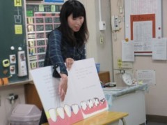 保健室の先生による歯磨き教室を各学年で実施しています。食べかすをきれいにとらないと歯が酸で溶けること、歯磨きはもちろん食事も大切であることなどを、絵本を通して分かりやすく子どもたちに教えています。また、カラーテスターを使った歯磨き点検も行い、隅々まで磨くブラッシングの仕方を学習しました。冬休みもしっかり歯磨きをできるよう、声掛けをお願いします。