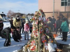 1月10日子ども会主催によるどんと祭が行われました。真っ白に雪が積もった校庭にて神事が行われた後、集められた正月飾りに、「あいさつの火」「健康の火」「学びの火」などが点火されました。御神火にあたることで一年の無病息災を祈願するお祭り、どんと祭。そのあとの甘酒とおしるこの味と温かさは格別だったようです。