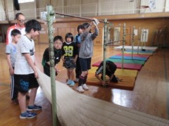 今日は健康委員会の子どもたちが体育館に鉄棒を設置してくれました。下にマットを引くなどの安全対策も行いました。子どもたちはこれから、「鉄棒検定カード」にある技を一つでも多くできるよう頑張ることでしょう。