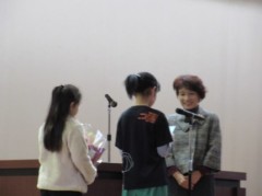 養護教諭の研修指導員として本校に15日間来ていただいていた岩間先生とのお別れ式を行いました。保健室でけがの治療をしてくださったり、保健指導でいろいろなことを教えてくださったりと、お世話になった先生に、花束と歌「ふるさと」をプレゼントしました。