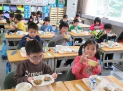 「おいしい」と言いながら笑顔の給食タイムでした。