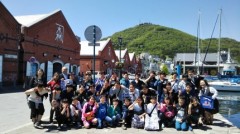 赤レンガ倉庫の前で「はい、ポーズ!」