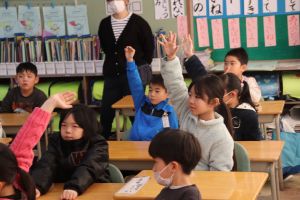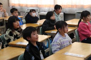 1年生の子どもたちが「真剣に話を聞き」「元気発表する」様子に、栄養士さんが感心していました。