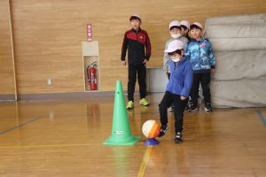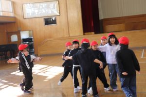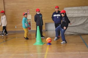 体育館は寒いのですが、子どもたちは、みんなで声を掛け合って運動することを楽しみました。
