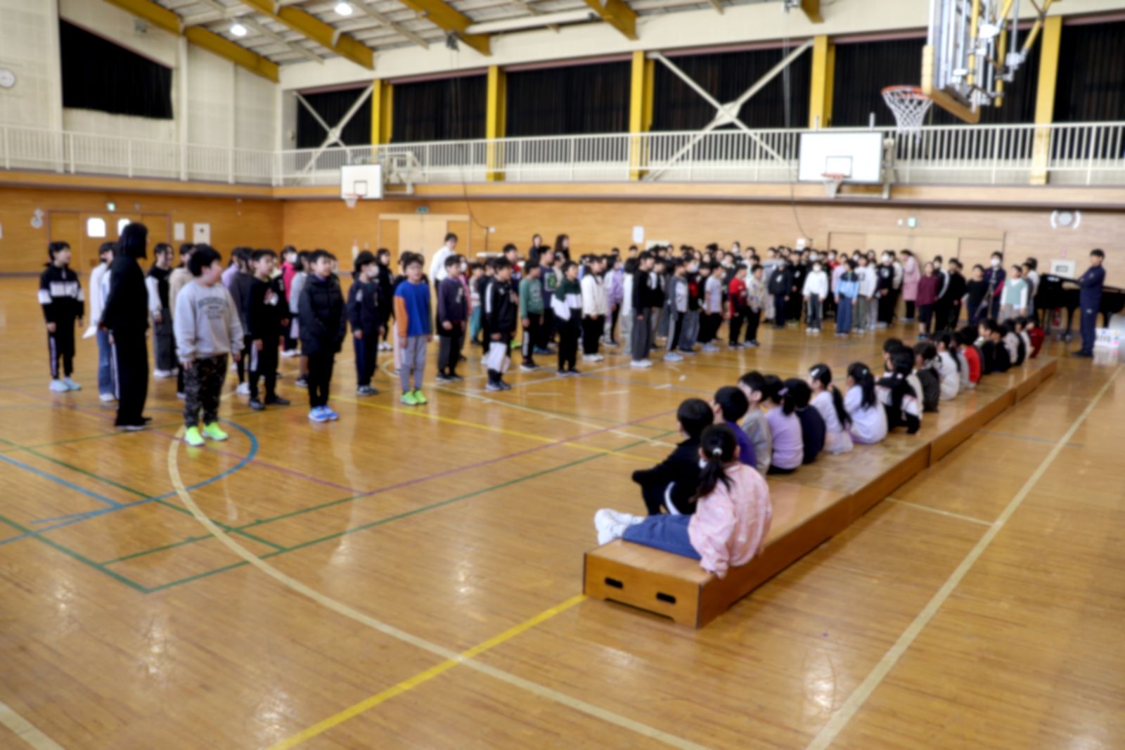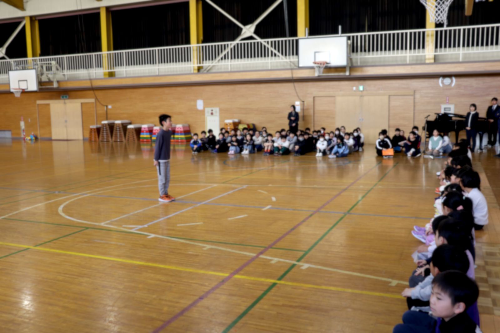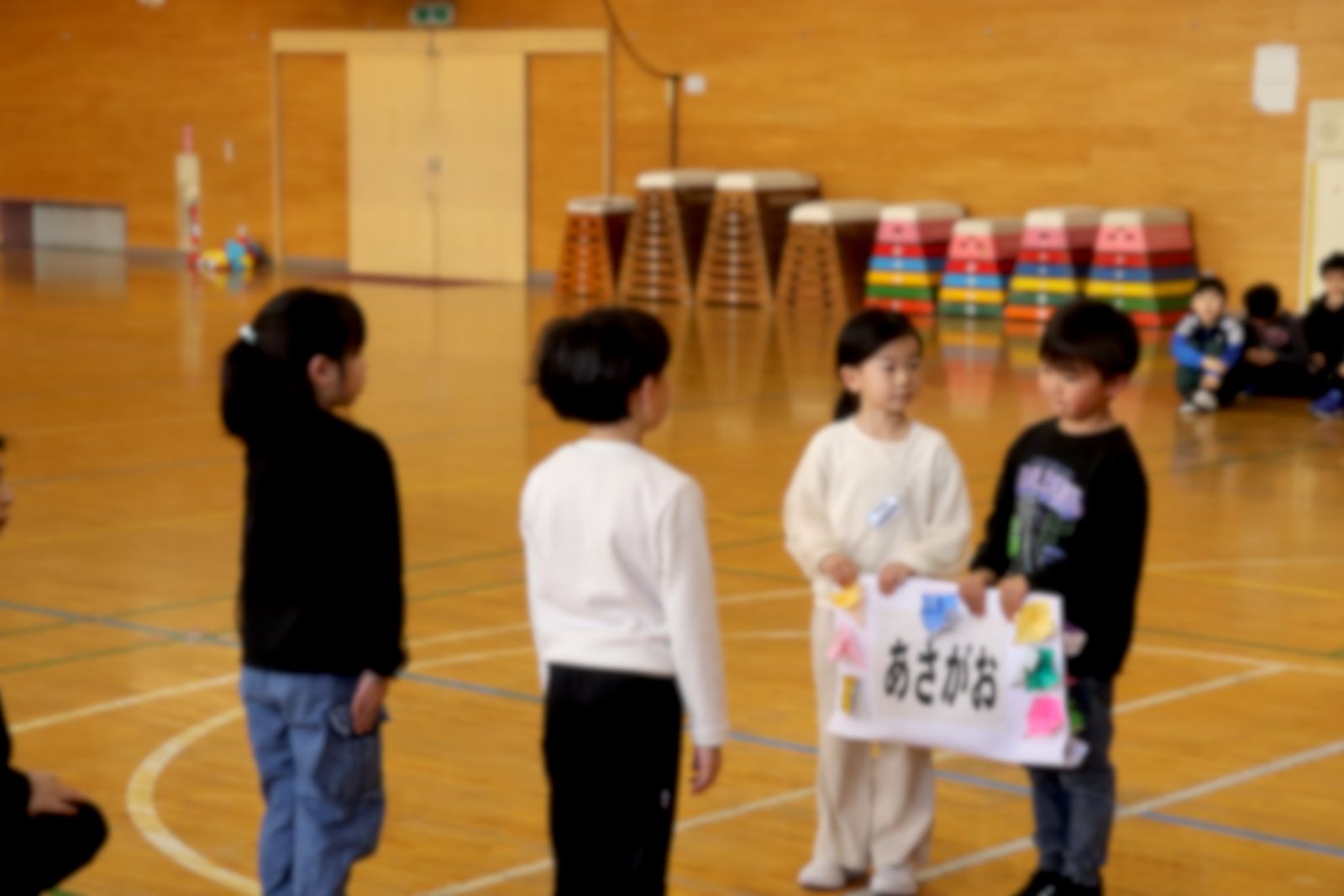 4月24日(金)、1年生を迎える会を行いました。 1年生は6年生と手をつなぎ、拍手に包まれながら入場しました。 2年生からはアサガオの種が贈られ、上級生全員からは校歌のプレゼントがありました。 会場にはやさしい歌声が広がり、1年生を歓迎する気持ちがあふれていました。 短い時間ではありましたが、全校が一つになり、温かい気持ちに包まれたひとときとなりました。