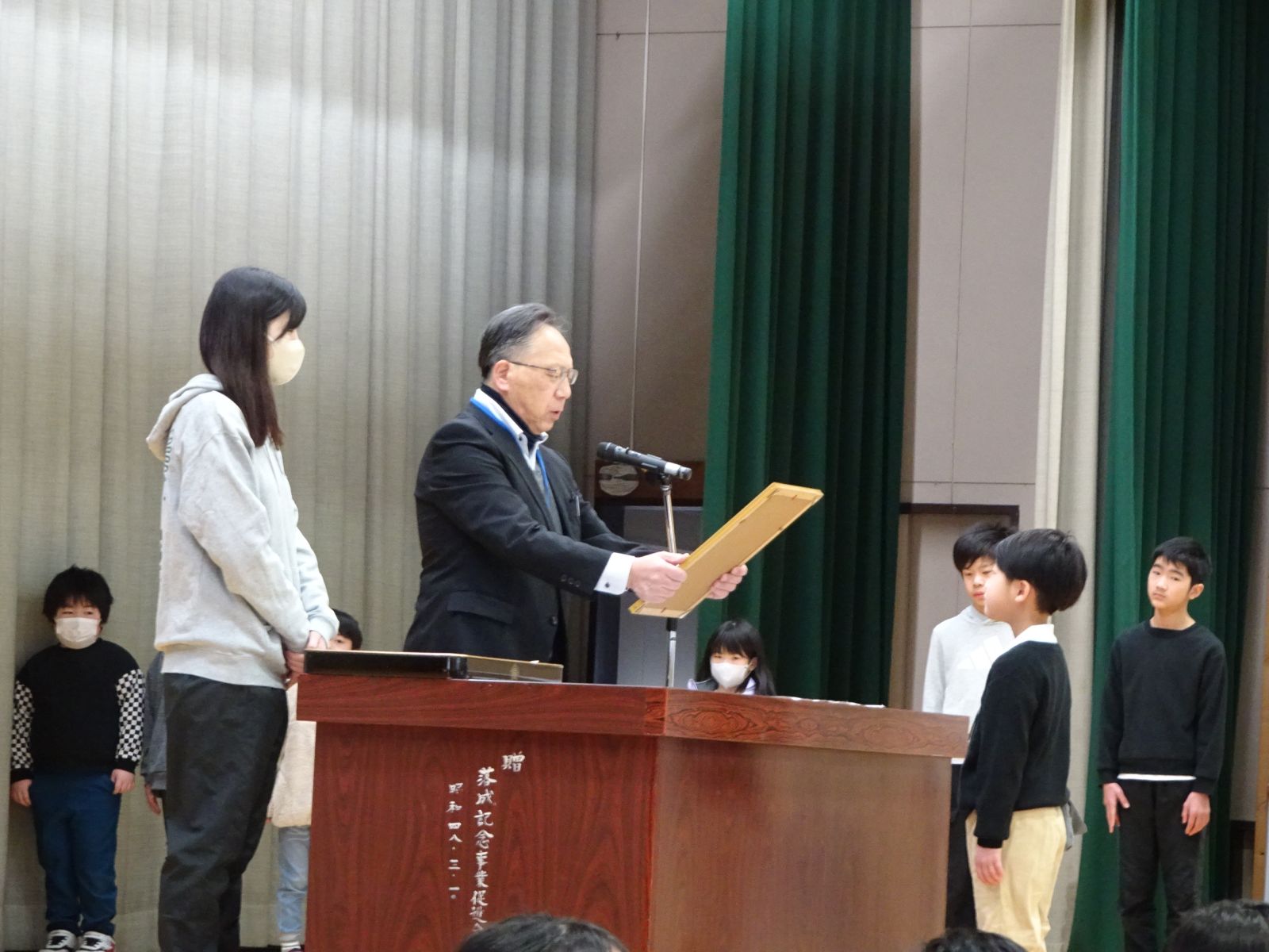 2月24日(火)の全校朝会で、表彰を行いました。