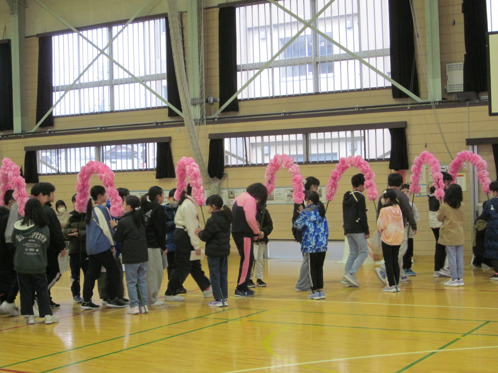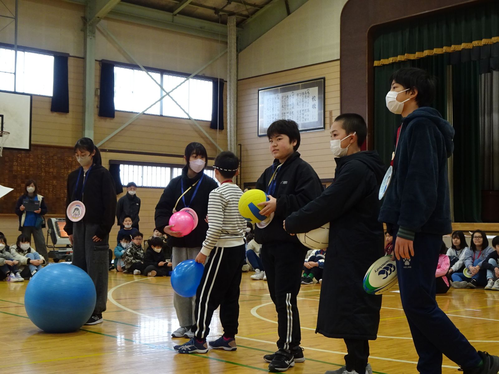 5年生は、縦割り班で行うボール送りゲームを企画してくれました。