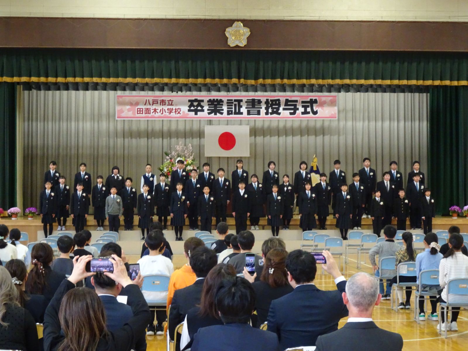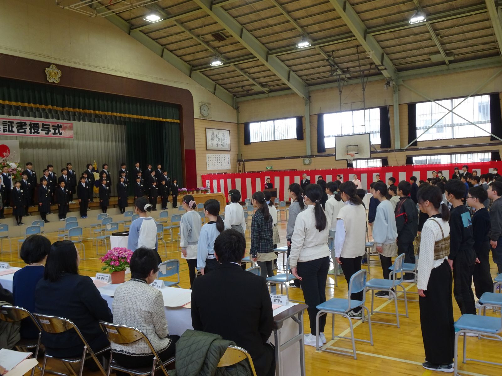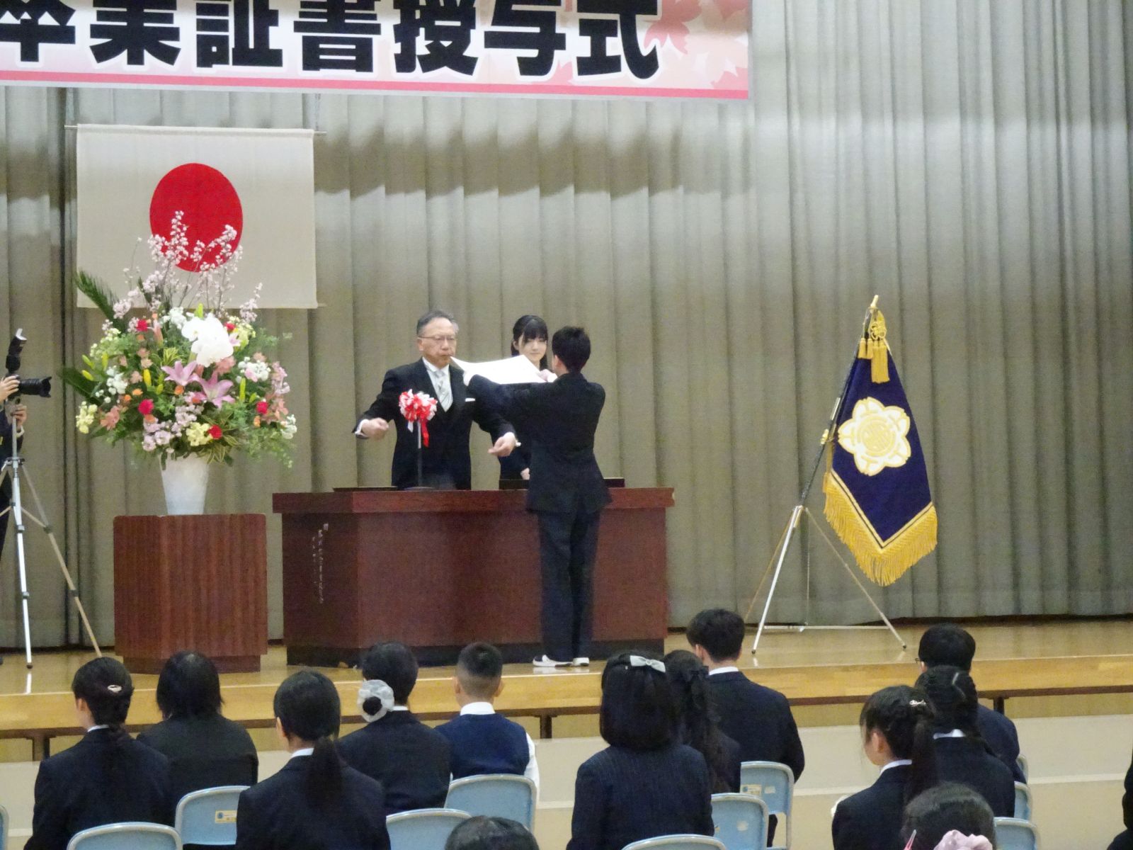 3月19日、在校生、地域の方々、そしてたくさんの保護者の方に見守られ、卒業証書授与式が行われました。