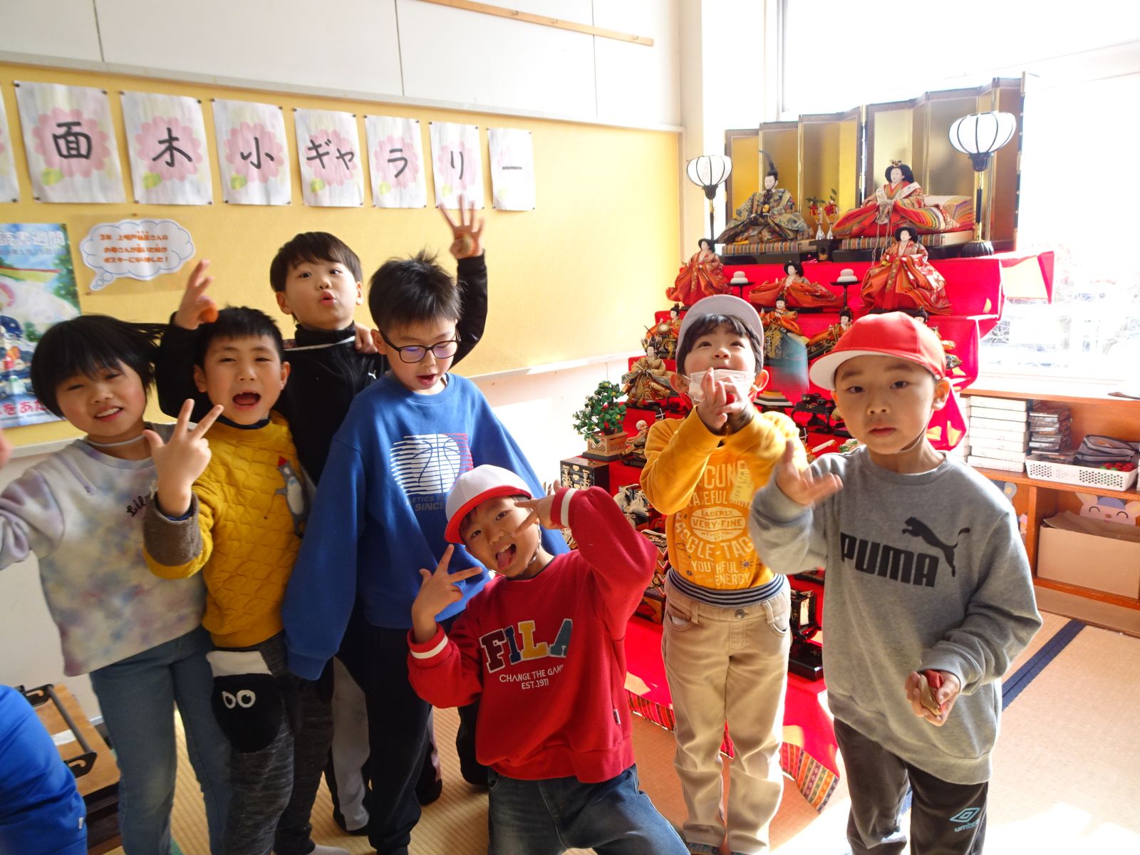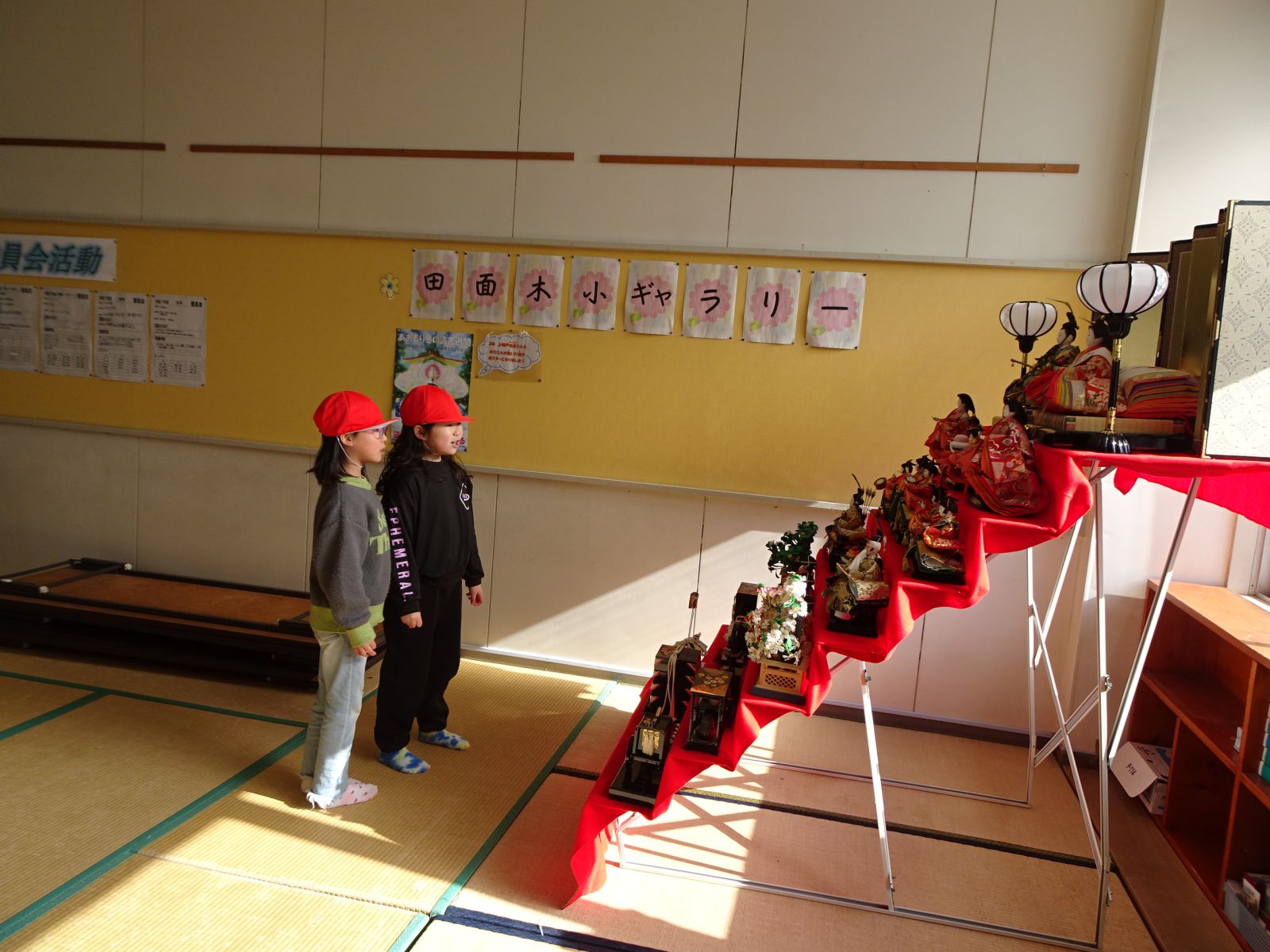 休み時間には、たくさんの子どもたちがお雛様を見に来ています。