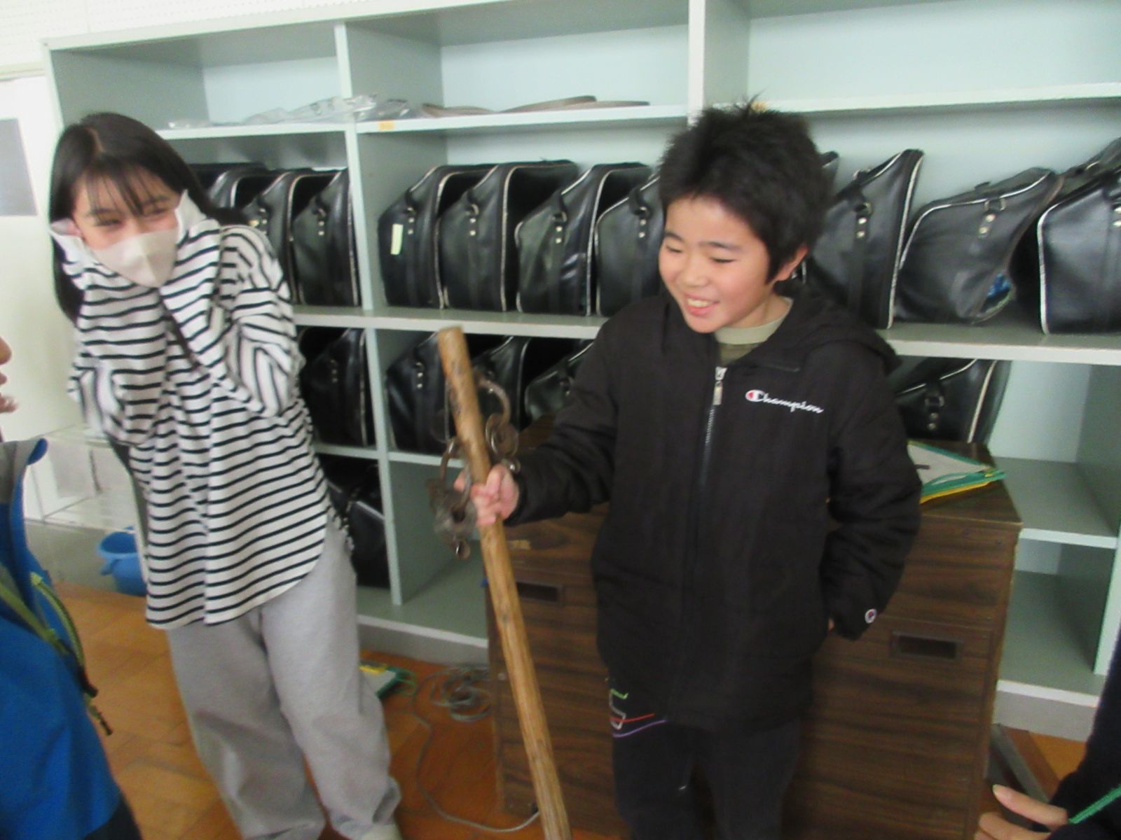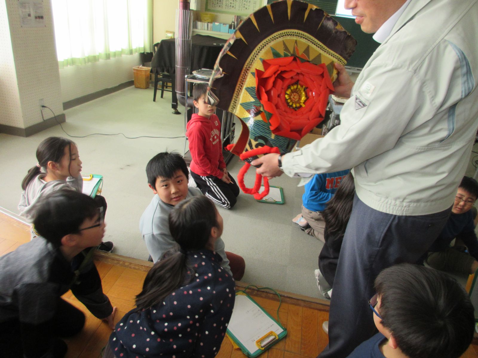 4年生では、2月5日(木)に博物館の方をお招きして、えんぶりについて学ぶ出前講座を行いました。
