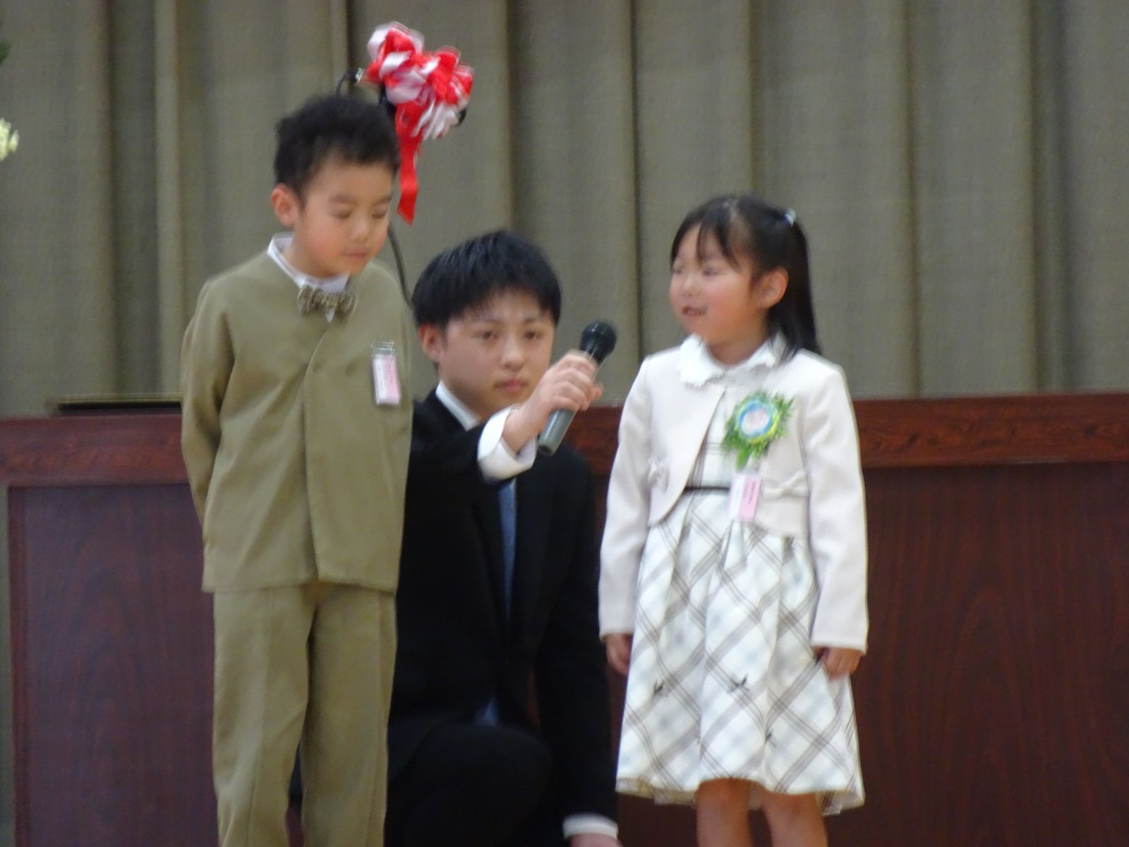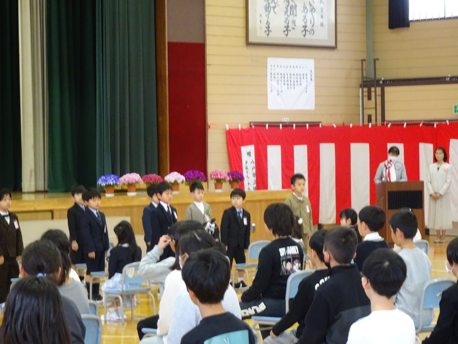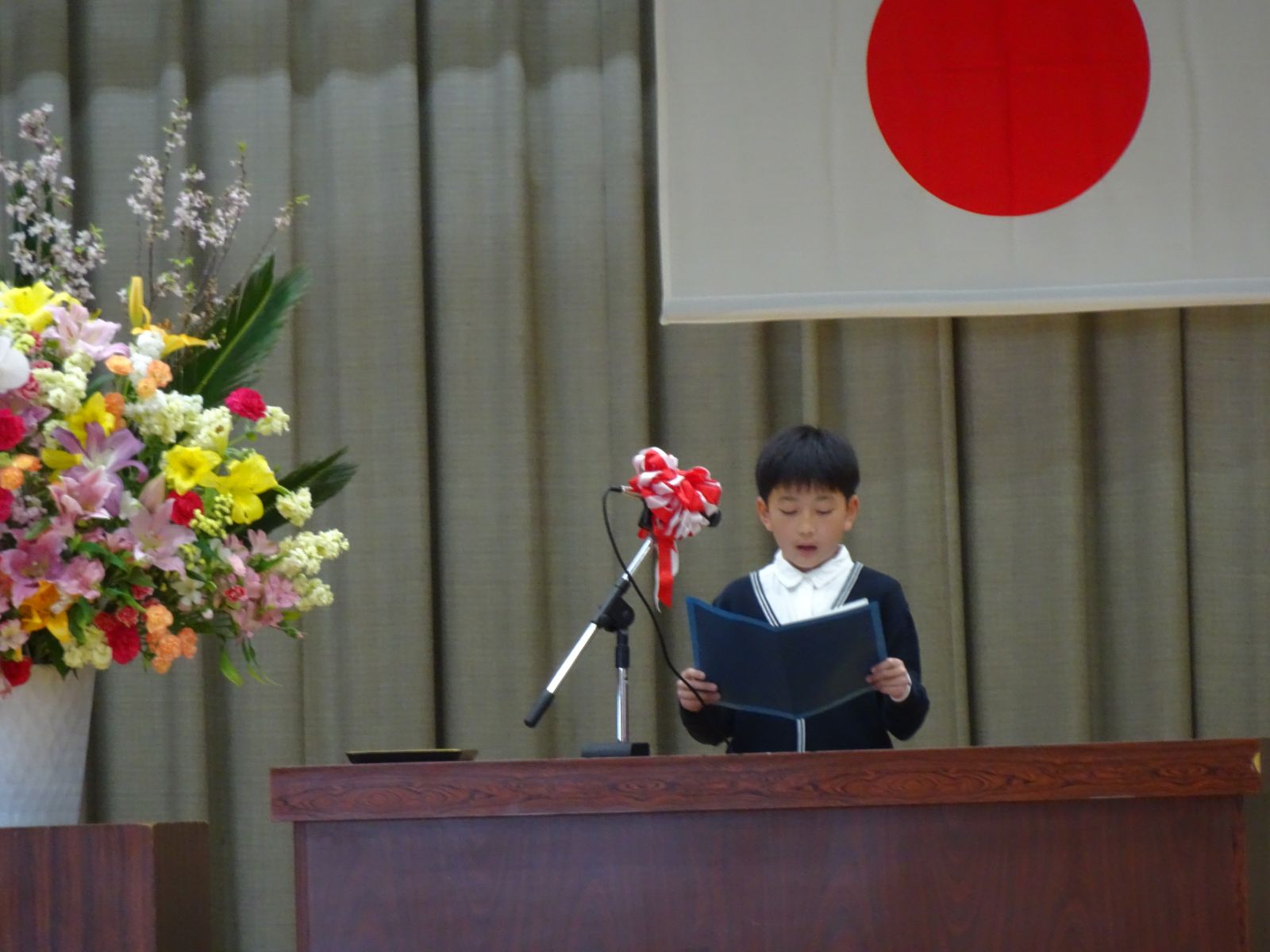 6年生の歓迎の言葉。田面木小学校のみんなで、かわいい1年生を待っていました。