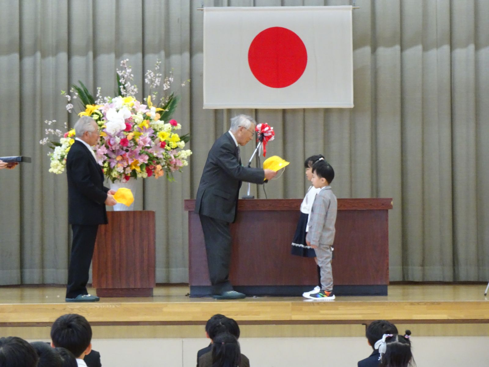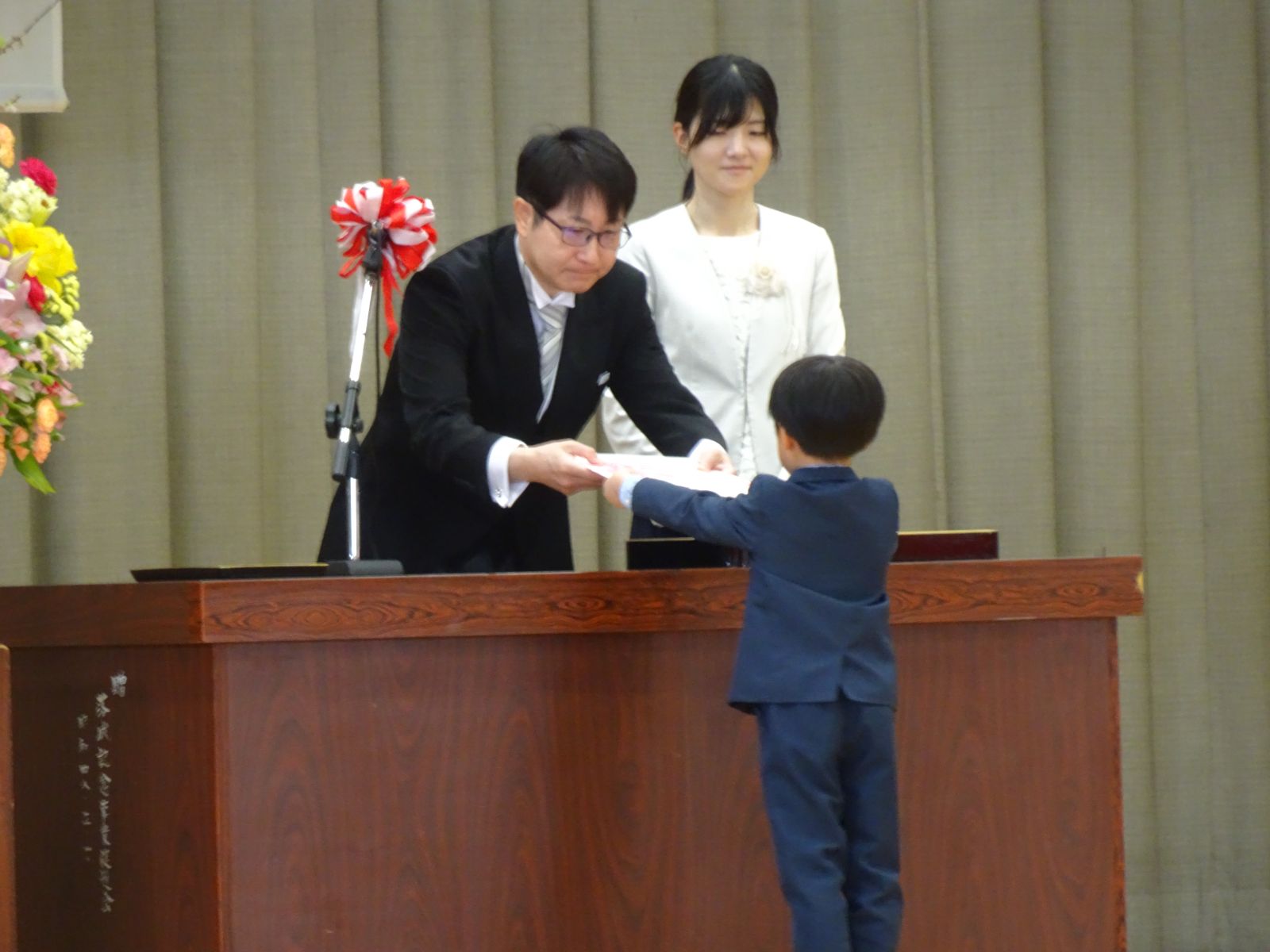 校長先生のお話のあと、担任の先生に名前を呼ばれた1年生。