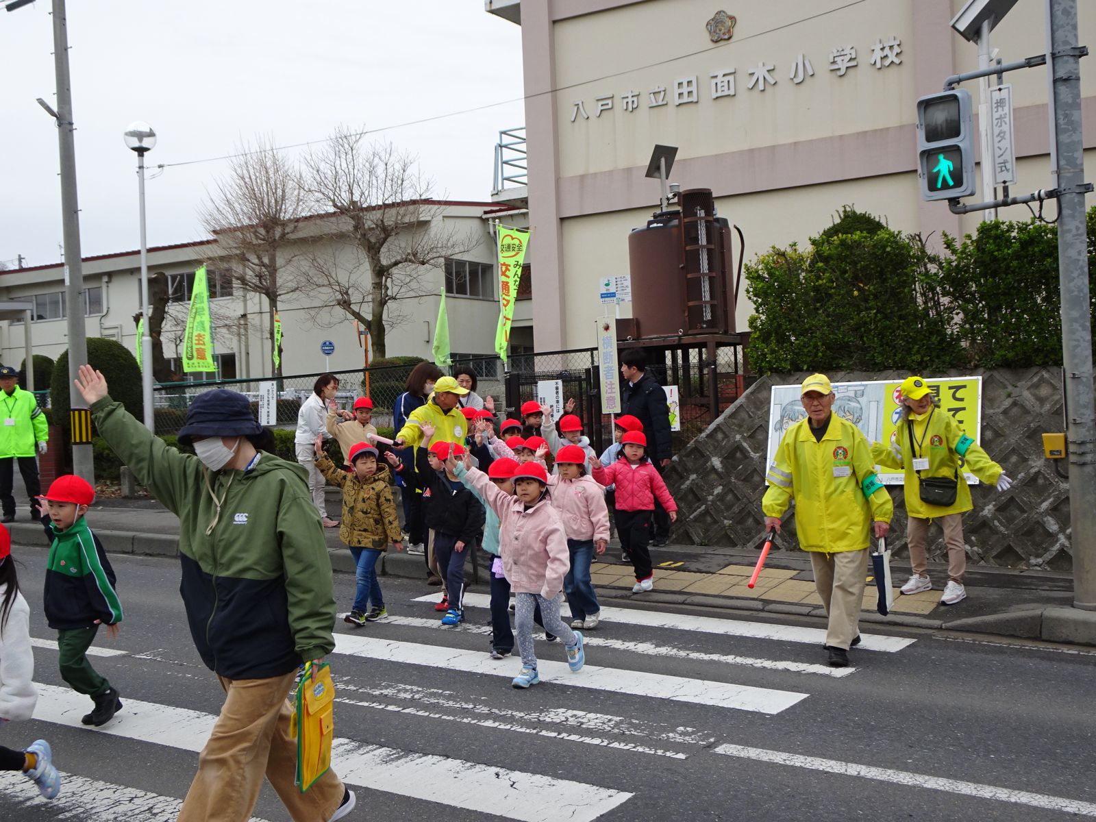売市交番の所長さんや毎日の登下校を見守ってくださる交通安全協会や防犯協会の方にも参加していただきました。