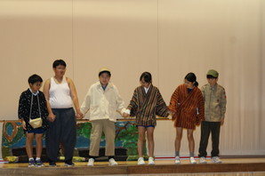 5,6年生の劇、「火垂るの墓」。役に入り込み、抜群の演技力で一転ほろりと来る劇を見せてくれました。