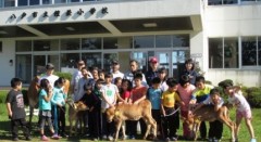 食育の一環として、普段飲んでいる牛乳のもとになる勉強をしました。鰺ヶ沢のアビタニア・ジャージーファームの安原さんが、親牛1頭、仔牛3頭を学校まで運んできてくれました。JAの方々、獣医さん、県の方々、たくさんの方々の協力により、仔牛のシャンプー、仔牛との散歩(仔牛に引きずられていたが)、搾乳体験など、校庭で楽しくできました。