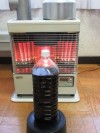 ストーブの前に、黒く塗ったペットボトルを水を入れ、2本ずつ置くことにしました。黒い色は、熱を吸収することを理科で勉強しています。