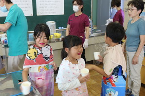 給食後に丁寧に磨いたつもりでも、染め出すと歯が真っ赤になる子が多くいました。奥歯に磨き残しが多いようなので、しっかりと磨くことが出来るように練習をしました。遠藤先生からは、児童用の歯ブラシをいただきました。ありがとうございました。