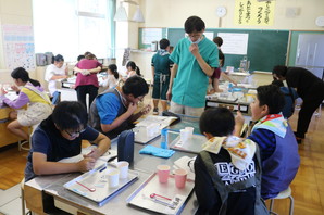 9月24日、学校歯科医の遠藤先生においでいただいて、歯磨き指導を行いました。