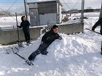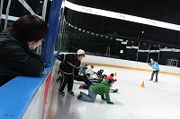 下学年は、氷に慣れるための運動です。転んだあと自力で立つ、自分の力で滑り出す、こういう動きを繰り返し行い、短時間であっという間に上達しました。