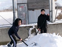 昨日のニュースによると、八戸の積雪は15cm、例年の250%の量だそうです。校庭も真っ白です。