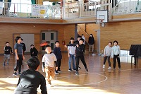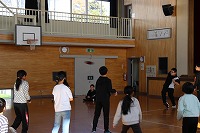 今日も「昼休みにみんなで遊びましょう」と6年生が声をかけました。今日はジェスチャーゲームのようです。1つ目のお題は「マリオ」です。写真のようなジェスチャーで伝えていき、最後の人は、一方は「マリオ」と答え、もう一方は「そば」と答えていました。何気ない動きをジェスチャーと勘違いしたのかもしれません。
