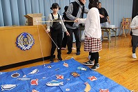 ステージではゲームコーナーも始まりました。お父さんたちに加え、卒業生も手伝ってくれました。