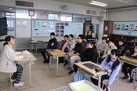 終業式が終わり、冬休みの注意のお話があったあと、冬休み中に勤務が最後になる事務の先生とのお別れの会がありました。どうぞお体に気をつけて、お仕事に励んでください。