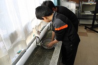 続いて、汚れ落としをします。ぞうきんで落ちにくい汚れは、スポンジを使います。