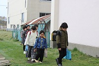 登校班の子供たちが次々とそろって登校してきました。張り切っている様子が感じられます。