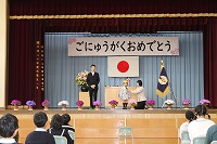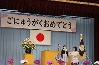 さて、入学式が始まりました。今年は、女子3名が入学してきます。受け答えがとても立派です。3人ともあいさつの場面がありましたが、はっきりした声であいさつすることができました。校歌の時に、一緒に歌っているのはびっくりしました。