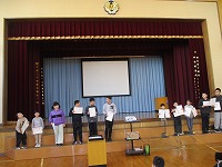 全校集会では、社会科自由研究と校内絵をかく会、そして、マラソン記録会の表彰をしました。何枚も賞状をもらうお友達もいました。講話では学習発表会の振り返りをしました。「学んだことは?」という問いかけに対して、6年生がさっと手を挙げ発言していました。6年生、さすがです。