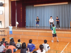 6年生の皆さんが、さっそく、修学旅行の思い出を寸劇にして、全校の皆さんに伝えていました。