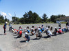 2学期が始まっています。夏休み作品展へのご来校ありがとうございました。今日は避難訓練を行いました。震度5の地震のあとに津波がくる想定で高台の多賀台方面まで避難する訓練をしました。感染予防として、マスク、黙動で歩くなど、子どもたちはルールをしっかりと守り、頑張って歩きました。写真は、目的地に集まり、お話を聞いているところです。