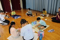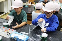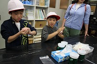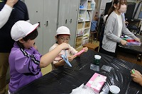 続いて、マシュマロスライムづくりです。手順どおり混ぜてこねると、マシュマロみたいな肌ざわりのスライムができました。最後は、水性マジックでお好みの色に仕上げました。