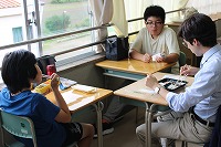 6年生が算数でおいしそうな勉強をしていました。「コーヒー2カップと牛乳3カップでおいしいコーヒー牛乳ができます。コーヒーを4カップにすると、牛乳は何カップかな」という比の問題です。実際に混ぜながら考え、いろいろ意見が出てきて、解決できたようです。これからも身のまわりで使えそうな考えです。