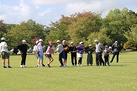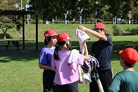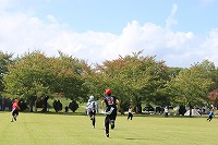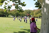 八戸公園は、樹木がうっすらと紅葉し始めていました。さわやかな秋晴れの下、6年生がレクリエーションを企画してくれました。まずは、タグの代わりにタオルを取る「タオル取り鬼」です。5分間続けると、かなり体力を消耗します。3回戦やって引き分けも2度ありました。最後は、「だるまさんがころんだ」です。芝生いっぱいに広がり、見ている先生達も心配していましたが、子供たちは猛ダッシュで近づき、ゲームが成立しました。