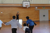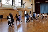 今日の昼休みは、4・5年生の企画「ボールだるまさんが転んだ」です。ボールが宙に浮いている間だけ前進することができる、だるまさんのルールです。鬼役のフェイントとの駆け引きを楽しみながら、少しずつ近づいていきました。最後まで、しっかり手をつないで、だるまさんが転んだを楽しみました。