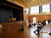 明日から10月、後期になります。10月は学習発表会があります。大勢のお客様を前にしても、みんなで声や動きをそろえる、一人でもはっきりした声で伝えるという場面での頑張りを期待しています。勉強も学習発表会の練習も頑張ってください。」