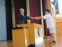 講話のあと、歯科保健図画・ポスターコンクール入選の賞状を渡しました。おめでとうございます。