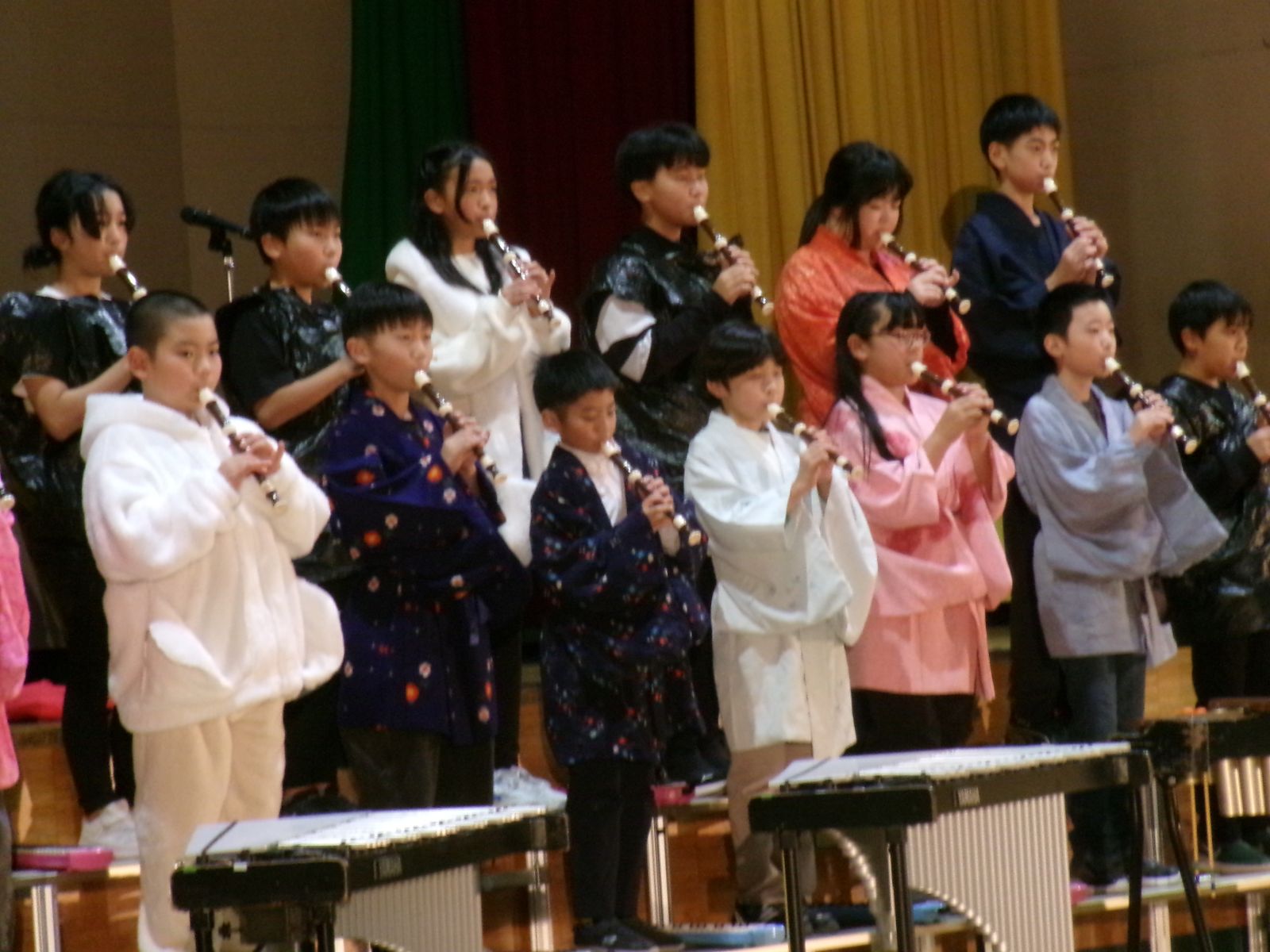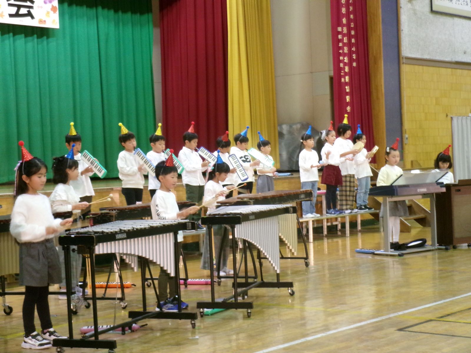 保護者や地域の方々が見守る中、一人一人が力を発揮し、すばらしい演奏や演技を披露することができました。