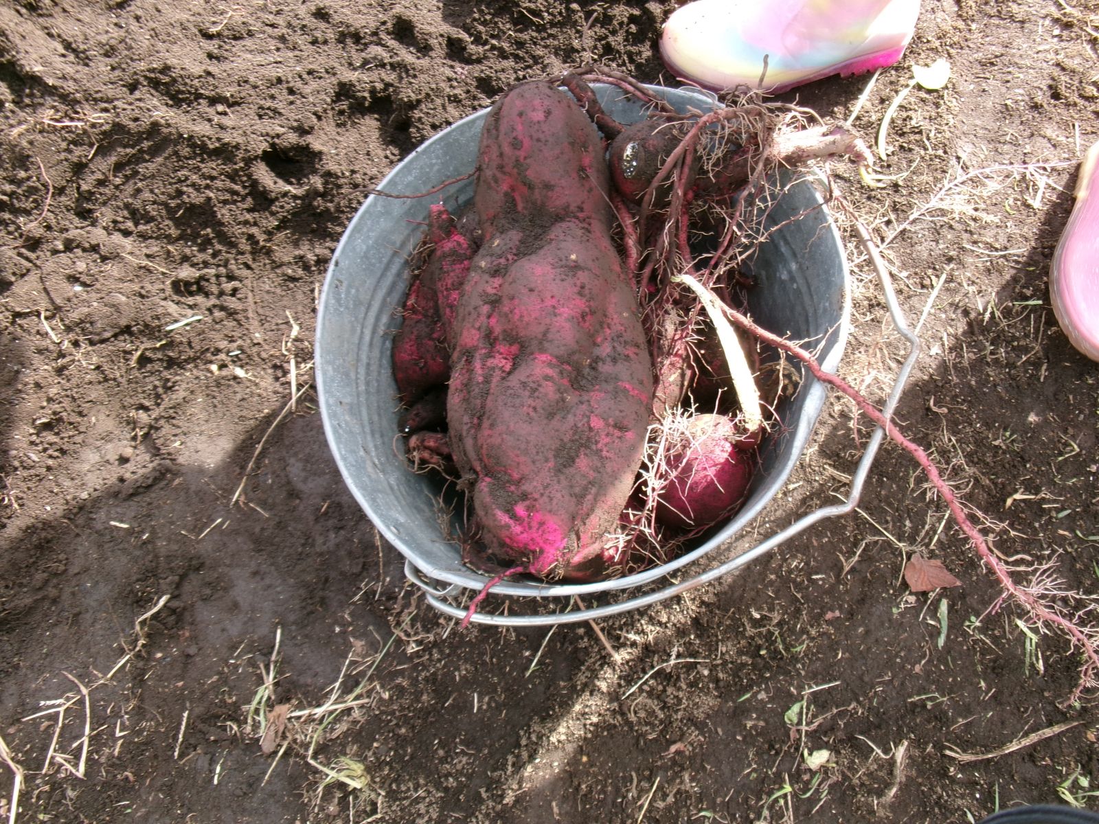 大きなサツマイモ、小さくてかわいいサツマイモ、ちょっと形のかわったサツマイモなど、土の中からたくさんのサツマイモが出てきました。