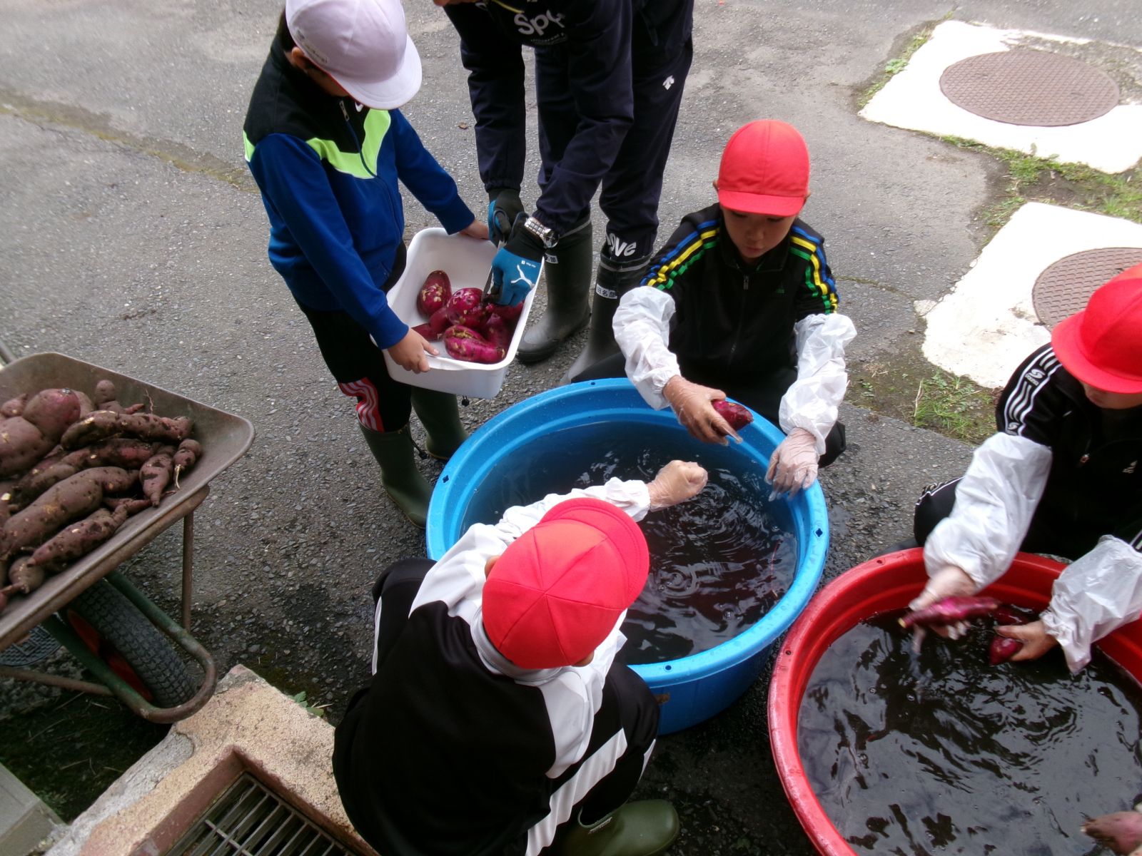 収穫したさつサツマイモは、3・4年が洗って、来週行う「秋を楽しむ会」に向け保管しています。