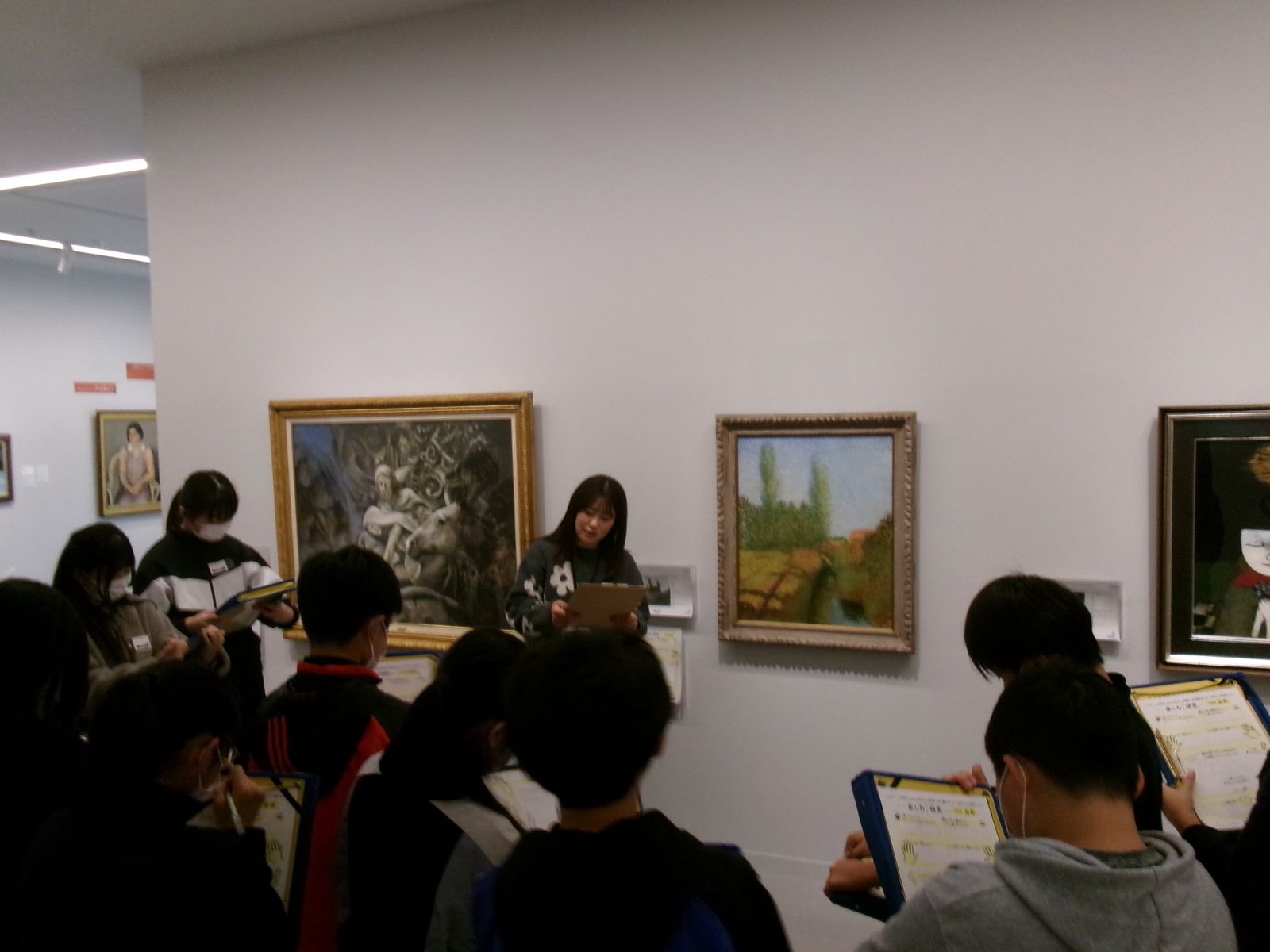 自分が感じた思いをワークシートに書いたり、学芸員さんに伝えたりしながら、絵画鑑賞を楽しみました。