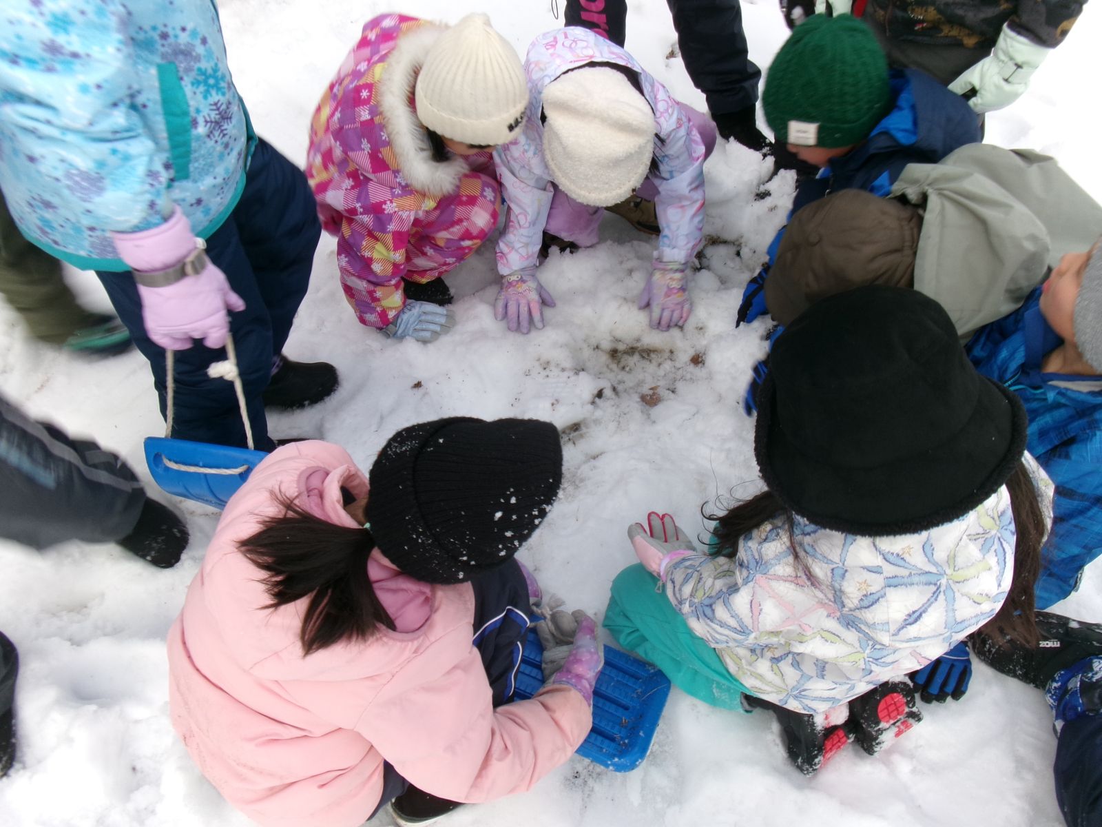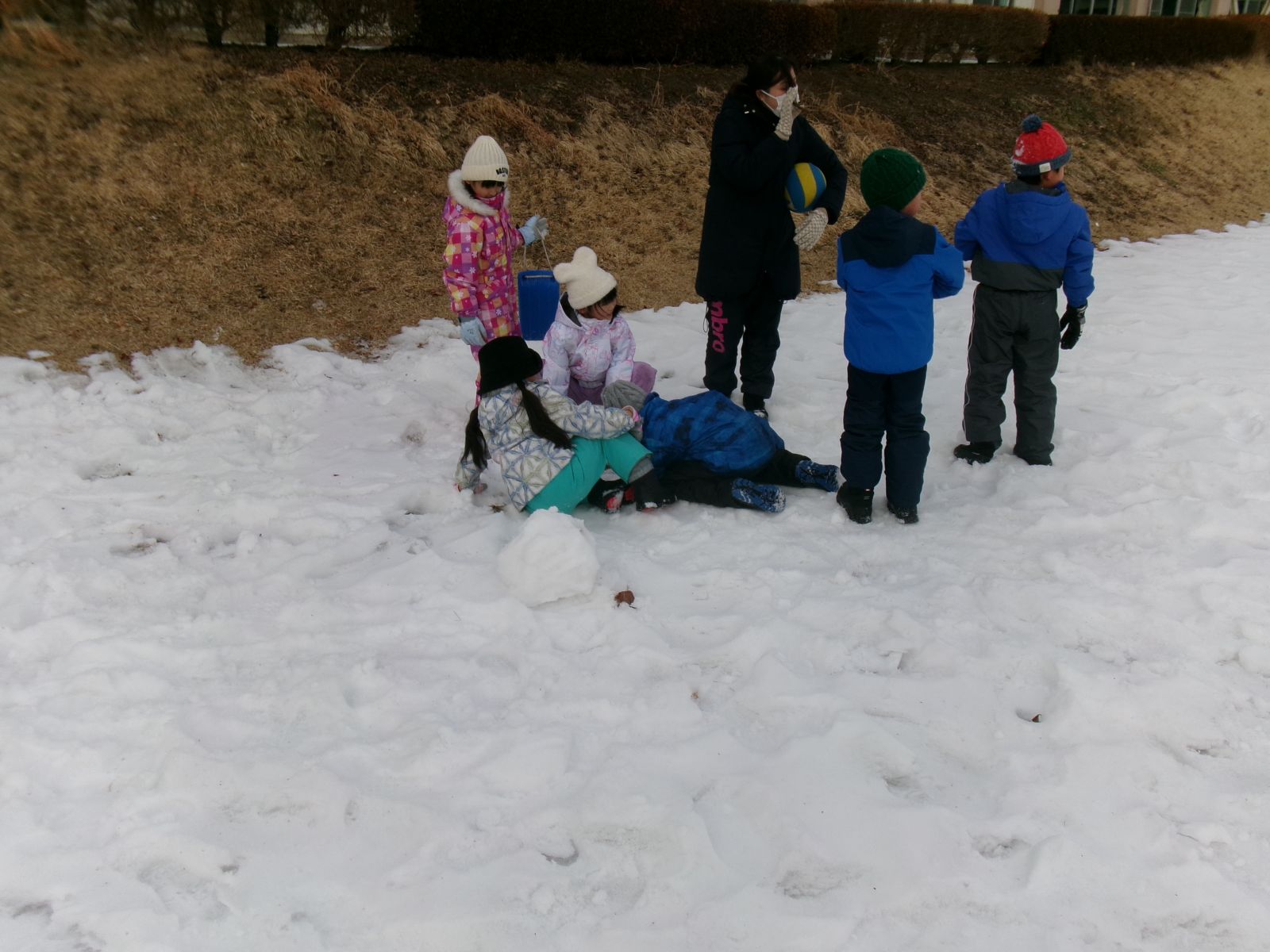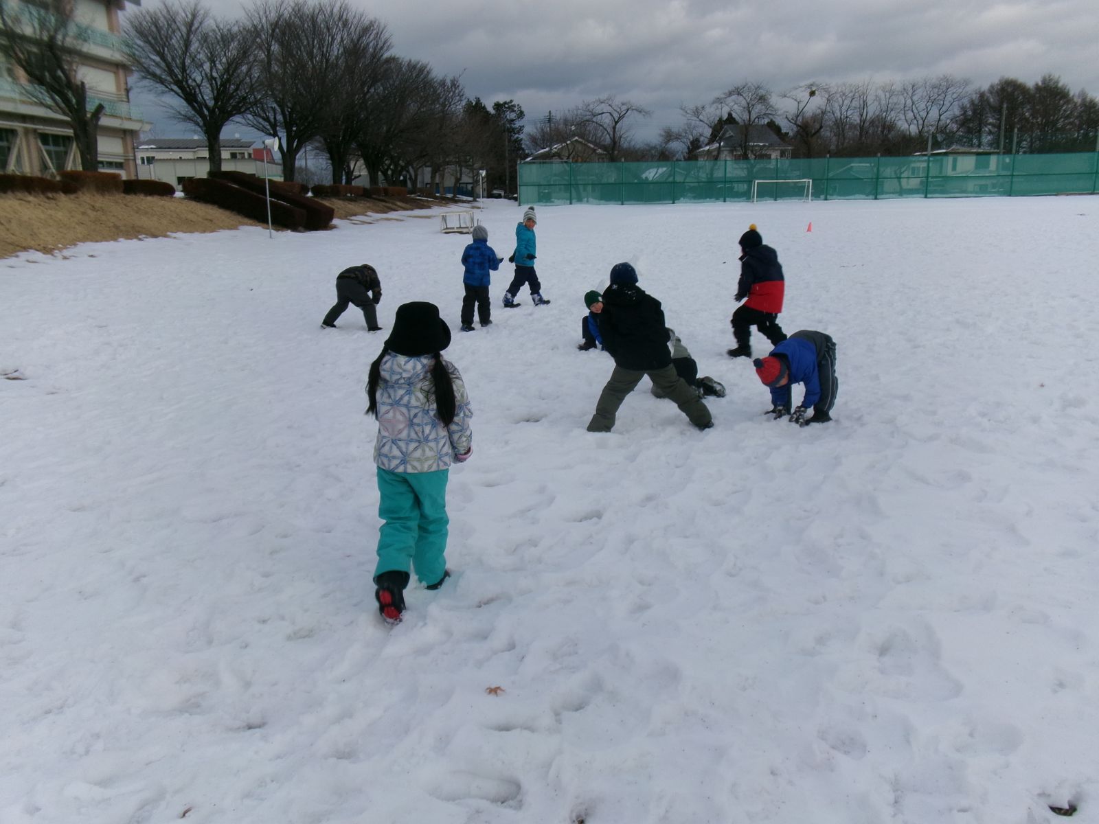 子どもたちは、図南小の校庭の自然にふれ、それぞれが遊びを通して、冬の魅力を楽しんでいます。