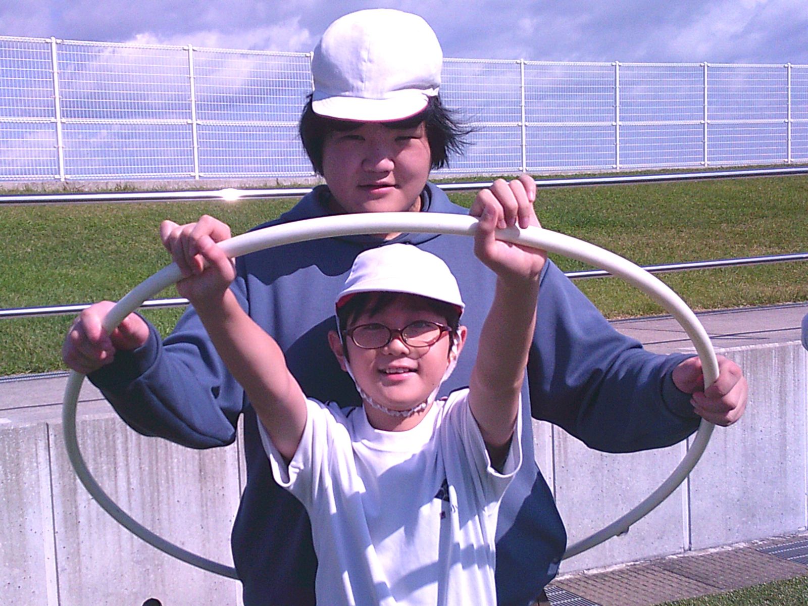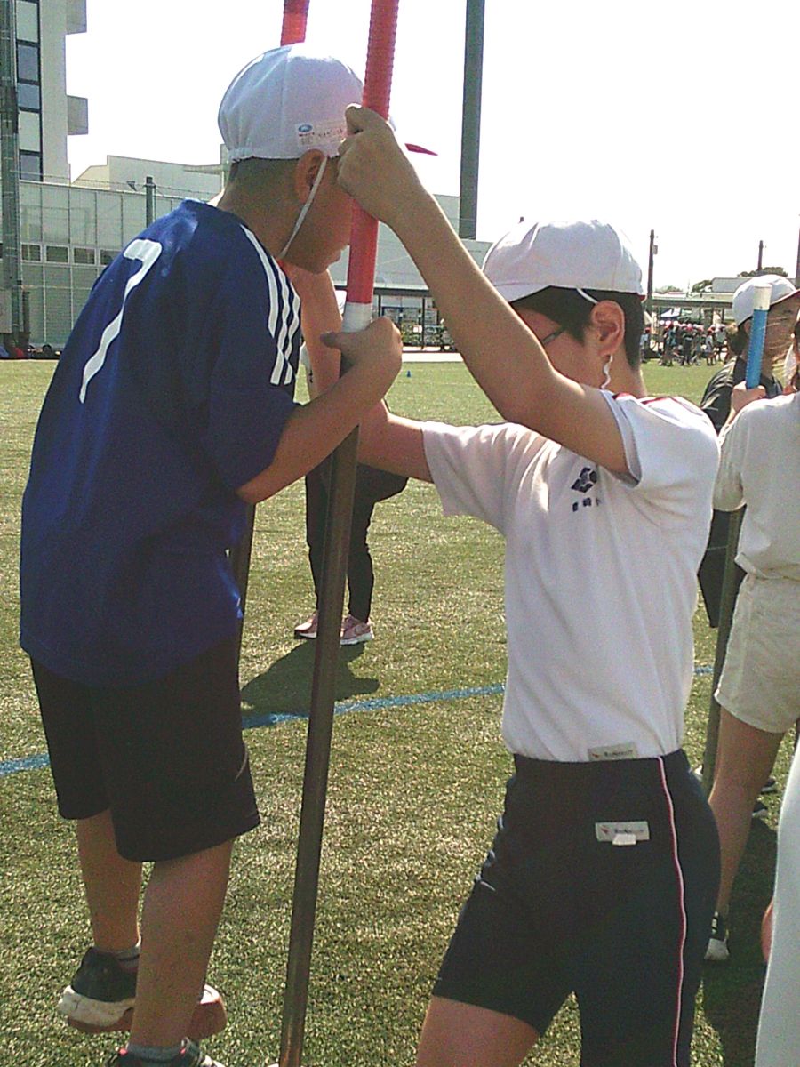 午前は、設置された各ブースで様々な体験活動です。昔遊びのブースでは、竹馬やフラフープなどを楽しみました。優しくサポートする高学年のお兄さん、お姉さんの姿が印象的でした。