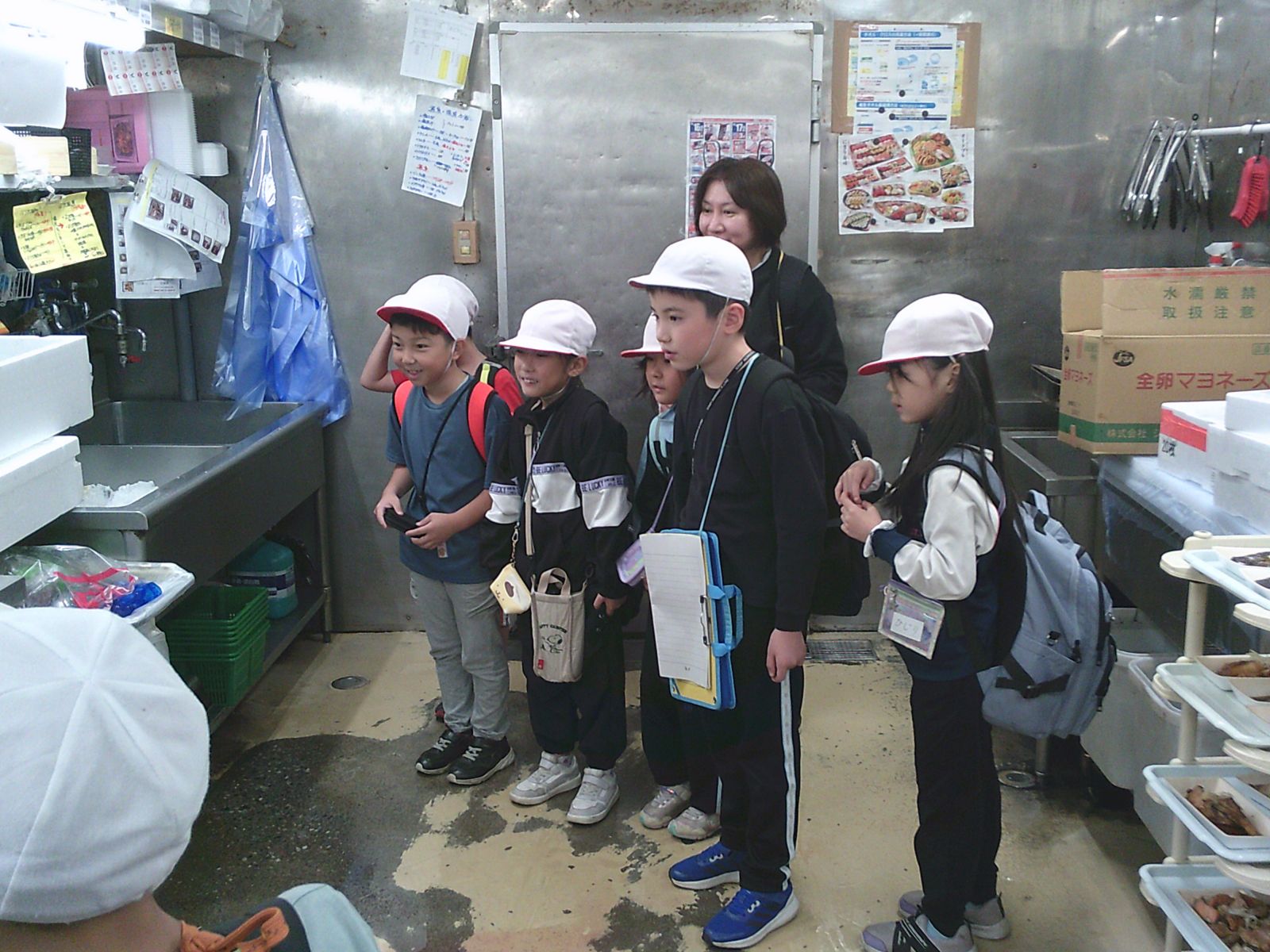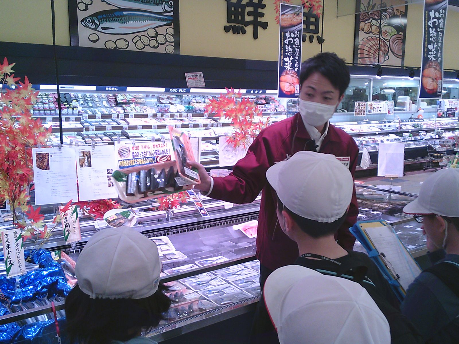 バックヤードの見学では大きな魚をさばく様子や見たり、値札を付ける体験をすることができました。