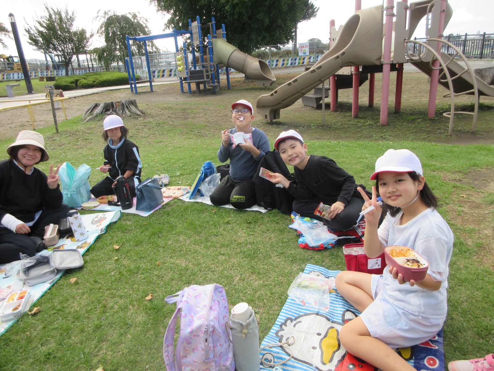 昼食は三八城公園で。心地いい青空の下で、おいしくいただきました。