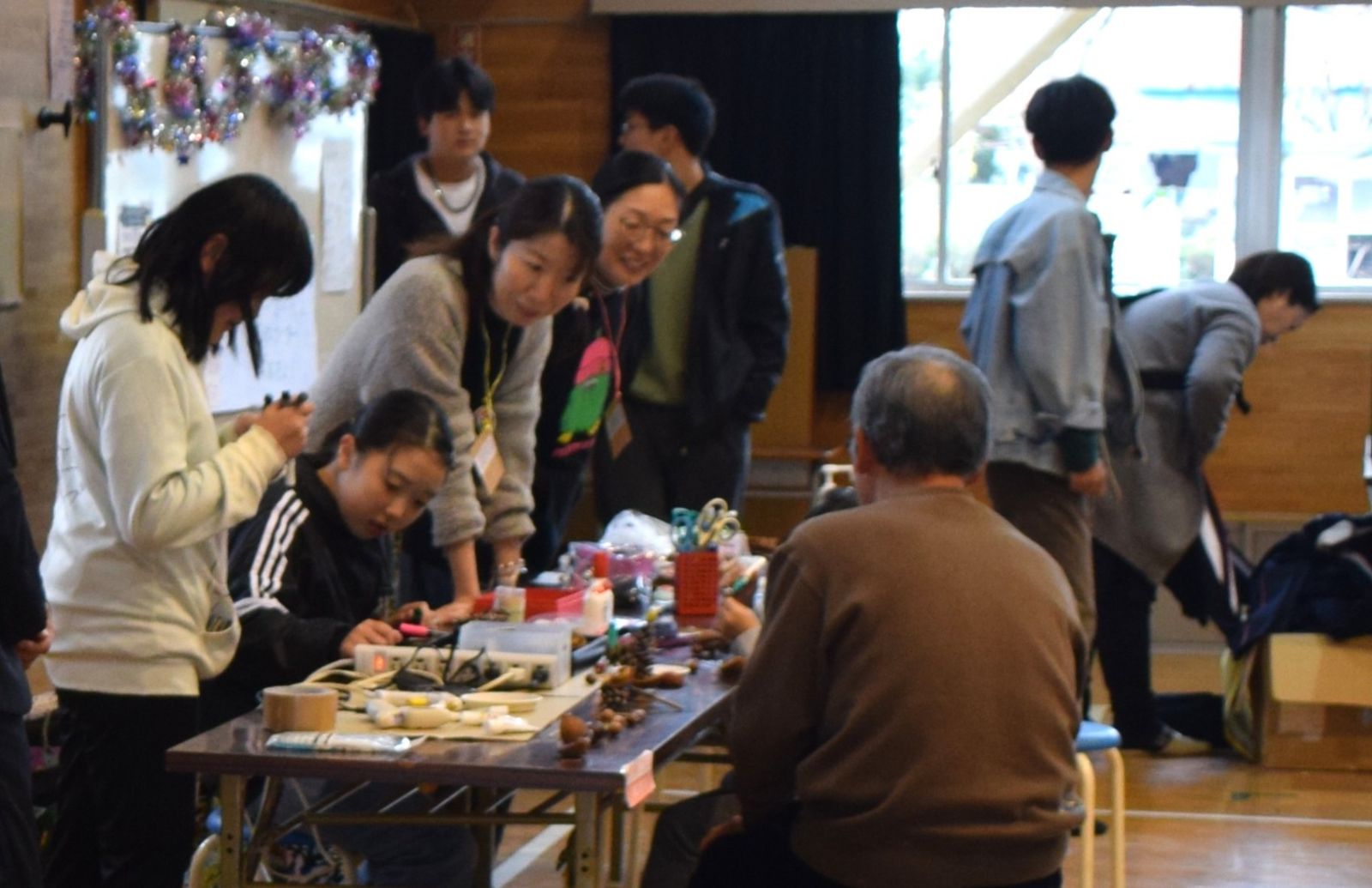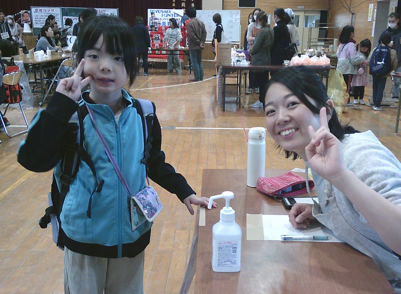 豊崎イレブンマーケットでは、自然の素材を使った小物づくりコーナーや古着のフリーマーケット、野菜の販売など。ここでも子どもたちが大活躍。未就学の幼児にもやさしく対応できました。